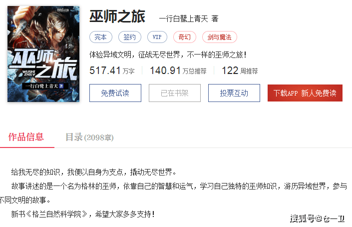 短评:巫师流的开山作,本文讲的是主角穿越到异界成为普普通通的小家族的子弟,带着拥有分析能力的芯片开始了自己的异世强大之旅…..本书模仿者很多,后来还有了芯片巫师流,这部书算开了先河吧,本文世界观非常宏大小说排行榜完结榜,血脉巫师的设定非常喜欢,猪脚冷静甚至于冷酷,他一心修炼,为了得到知识与力量能够舍弃一切,猪脚一直在四处浪,