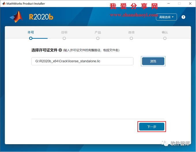 7.进入选择许可证文件界面,直接点击【浏览】按钮