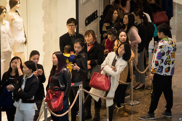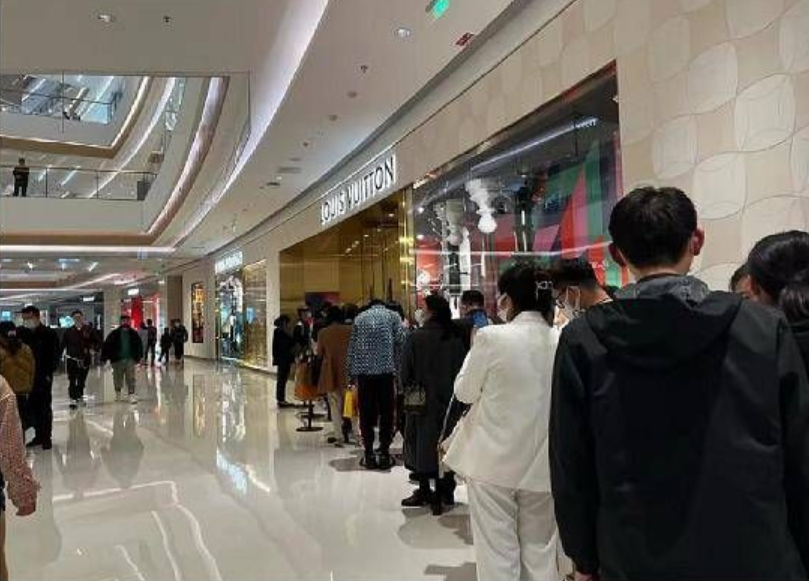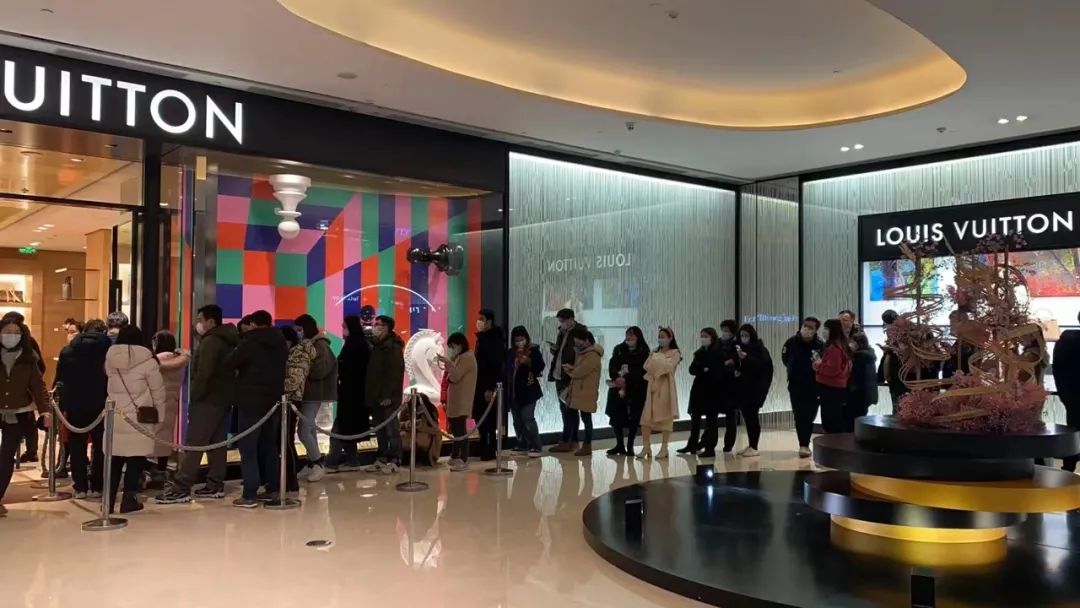 2月15号晚上9点半,上海尚嘉中心的LV店仍旧有不少人在排队等着消费。