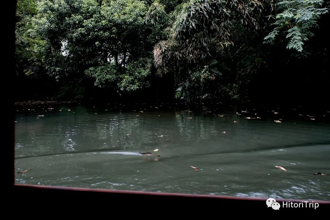 坐在船上缓缓前行,与在岸边远眺的风景相比,又有很多不同。园林景观层次丰富,植物盘根错节,水中生物若隐若现,静寓动中,动由静出。想起陈从周在《说园》中描绘,观园有静观,也有动观:「若静坐亭中,行云流水,鸟飞花落,皆动也。舟游人行,而山石树木,则又静止者。止水静,游鱼动,自成佳趣。」