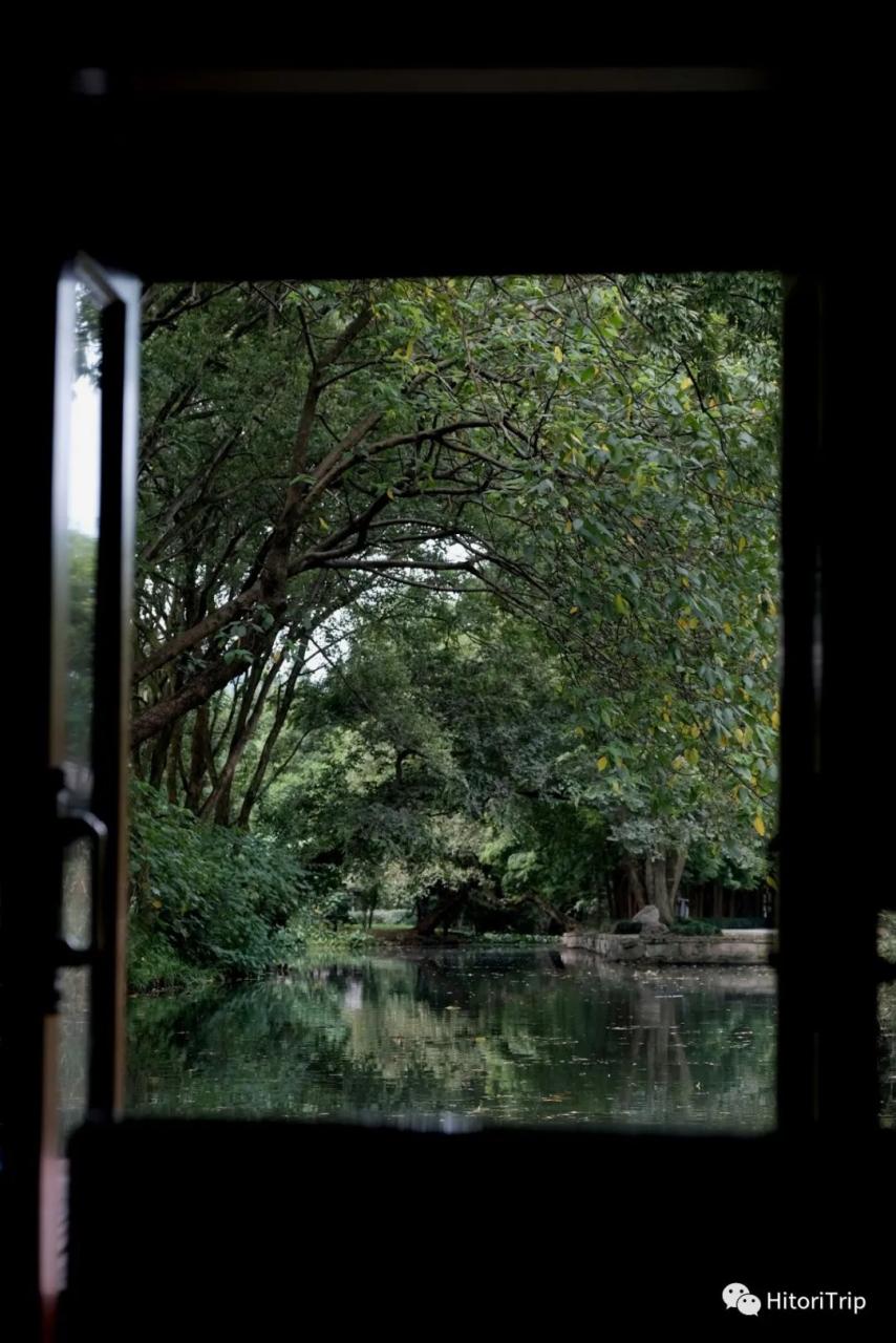 回到2层的房间中,拉开纱帘在飘窗上稍息,继续观赏园中景色,水面上泛起涟漪,虫鸣有节奏地响起,数种绿植勾勒出复杂画卷,亭子尖角从中悄悄探出。