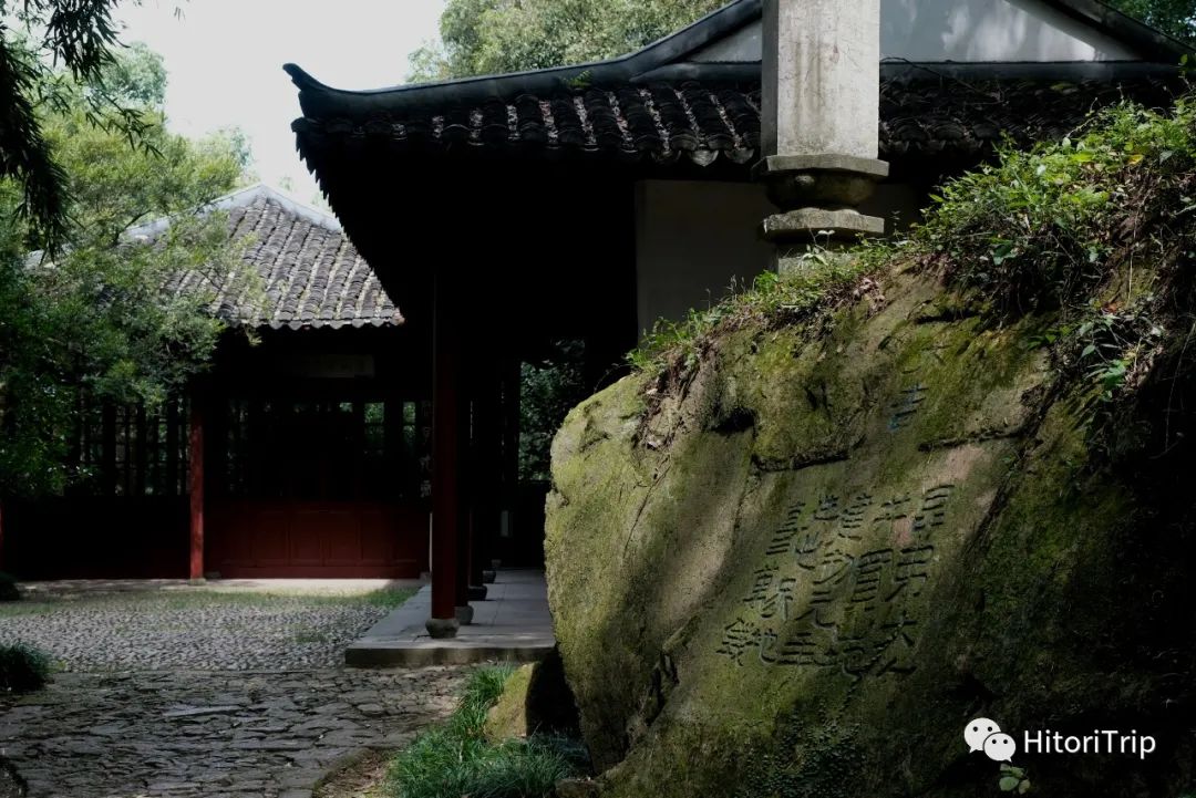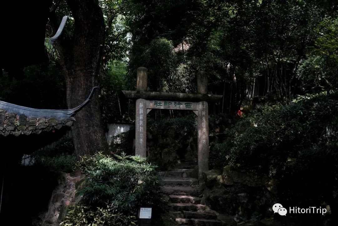 顺着道路拾阶而上,前山石坊首先映入眼帘,此处在陈朝时为广化寺,因为堂前植有两棵柏树,故名为「柏堂」。西泠印社四字为首任社长吴昌硕所书。