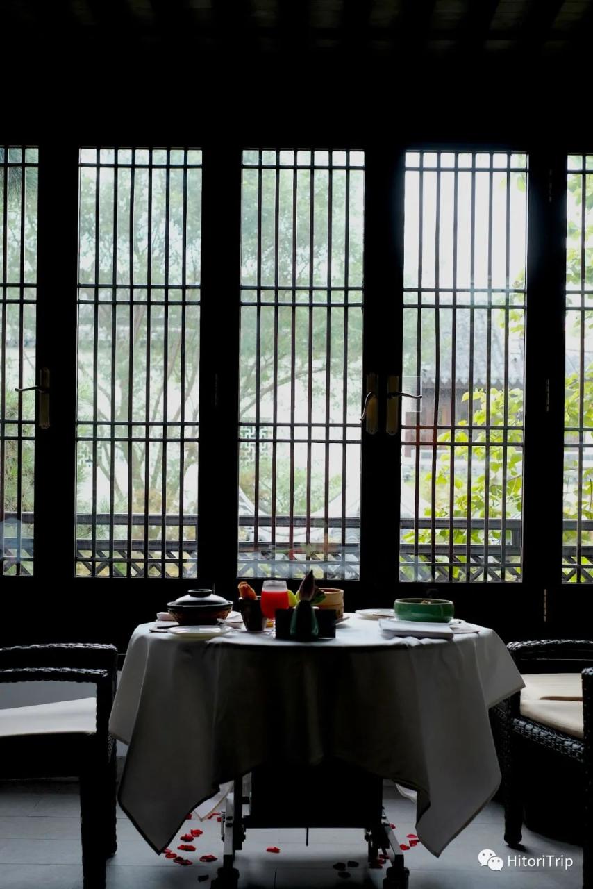 庭院有仰观和俯观之区别,陈从周先生说,建筑的顶、假山的脚、水口、树梢,都不能草率从事,要着意安排。山际安亭,水边留矶。俯观的庭院和刚才相比,又有着全然不同的空间感和声感,湿热夏日中难得的放松时刻,也随着这些要素印刻在了脑海里。