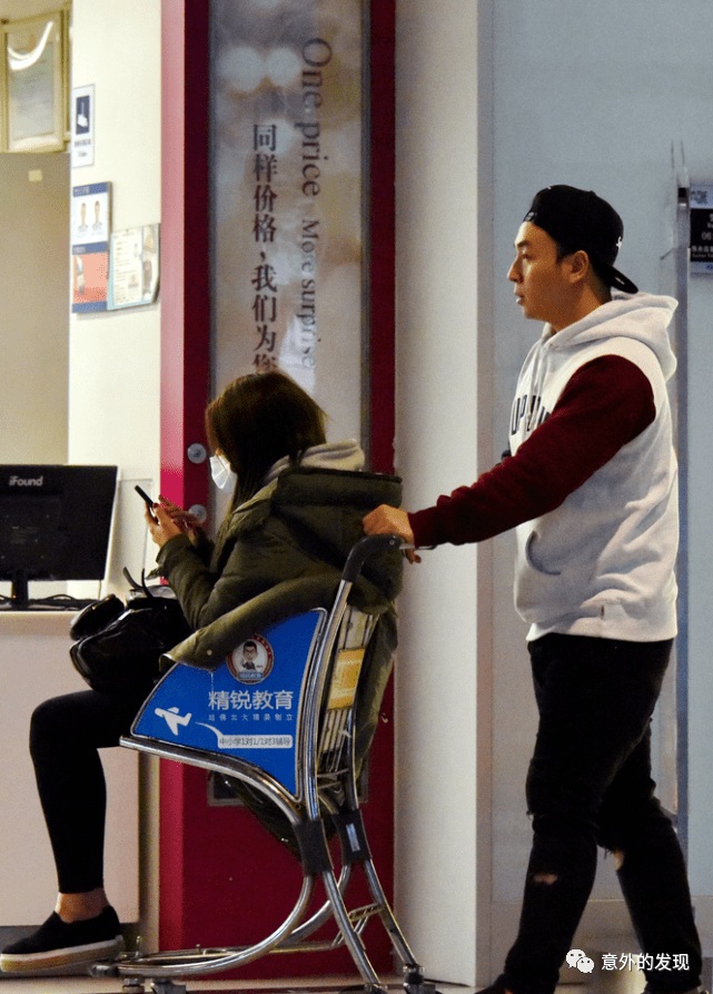 在登机之际,释小龙还尽显男友力,将该女子用行李车推向登机口,两人完全是热恋情侣的模样。