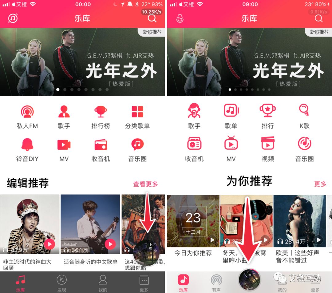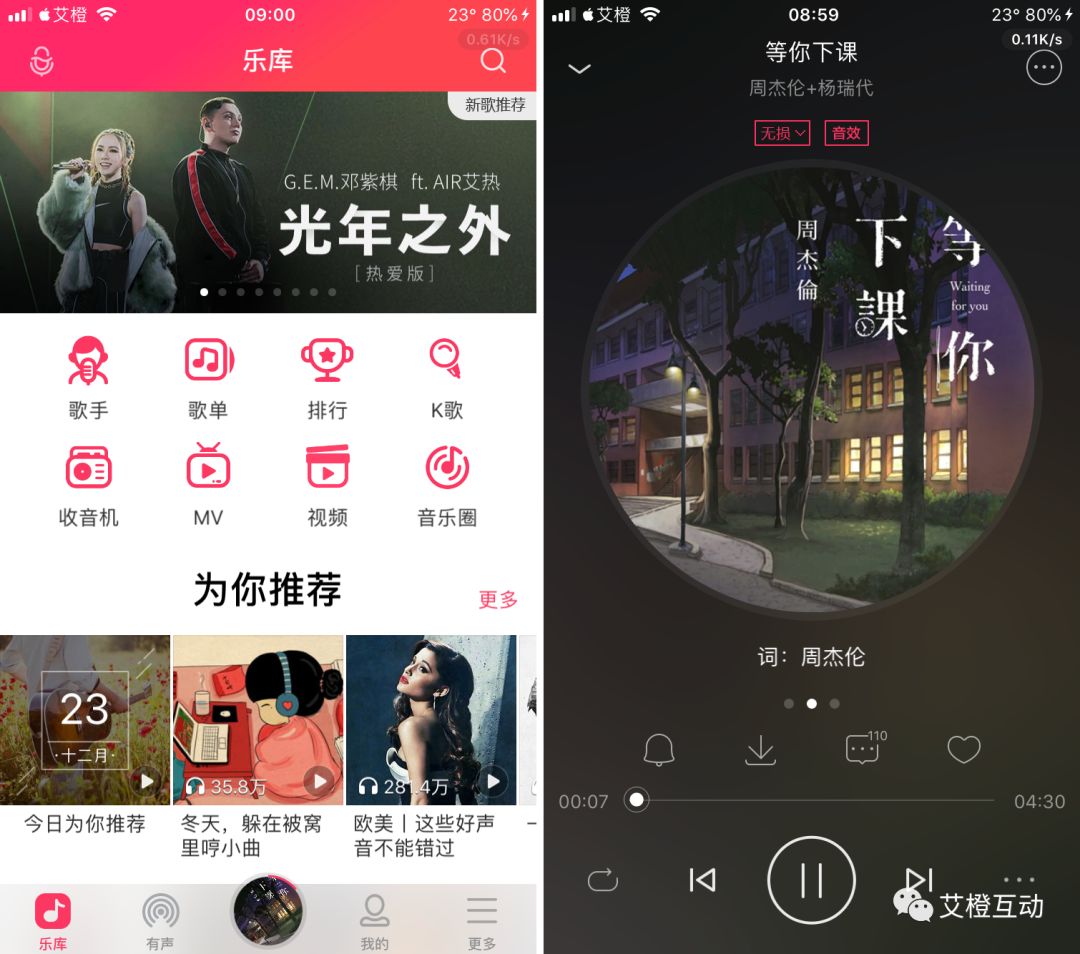 爱听和爱听4g 在界面上略有不同,底部配色,设置界面mp3免费音乐下载,特别是正在播放选项,爱听使用的悬浮窗口,爱听4g 使用的是底部固定菜单。