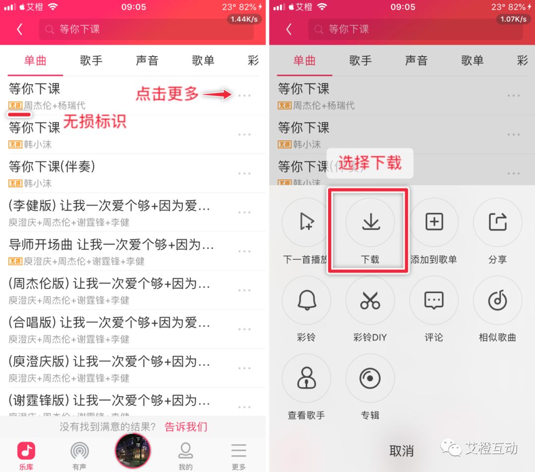 爱听4g,你可以免费播放/下载无损音乐,找到你喜欢的歌曲,可以看到无损标志,点击更多弹出菜单,选择下载。
