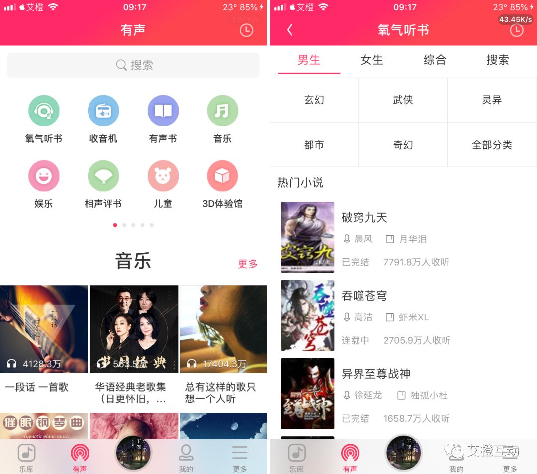 在爱听的有声栏目,你会看到更多内容,例如氧气听书等等。
