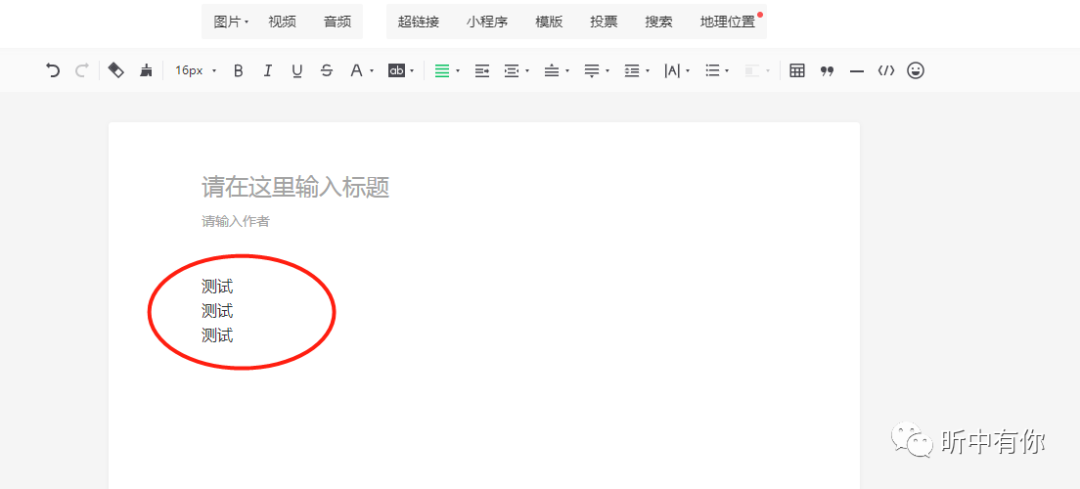 先把“圆圈对勾”点击为红色状态,紧接着左手点击Ctrl+C,右手点击公众号的一篇新建图文素材秀米制作,把光标移动到正文处。