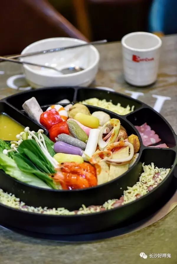 而炒锅可将培根、鸡肉、年糕等荤素菜品放入中间,其余分区用来烧海鲜、烤肉、蒸蛋、融芝士。