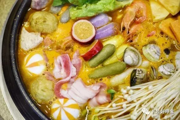 年糕不可错过,南瓜、紫薯、香蕉、抹茶、草莓、黑糯米,都是芝士夹心的,煮着煮着就软趴趴的,爆浆了,速度夹起,小心烫口。