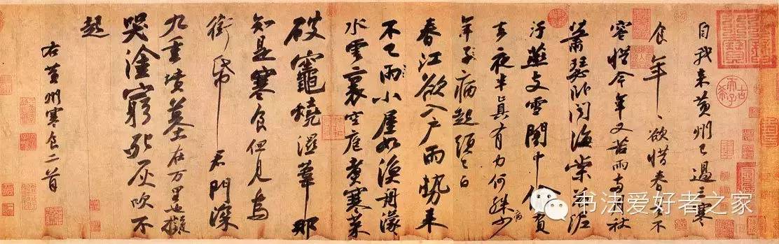 诗中阴霾的意象如小屋、空庖、乌衔纸、 坟墓……渲染出一种沉郁、凄怆的意境。表达出了作者时运不济谪居黄州的灰暗烦闷的心境。 从文中“空庖煮寒菜,破灶烧湿苇”,可以想见他窘迫的生活。这两首诗放在苏轼三千多首诗词中,并非是其上乘之作。而当作者换用另一种艺术形式——书法表达出来的时候,那淋漓多姿、意蕴丰厚的书法意象酿造出来的悲凉意境,遂使《黄州寒食诗帖》成为千古名作。