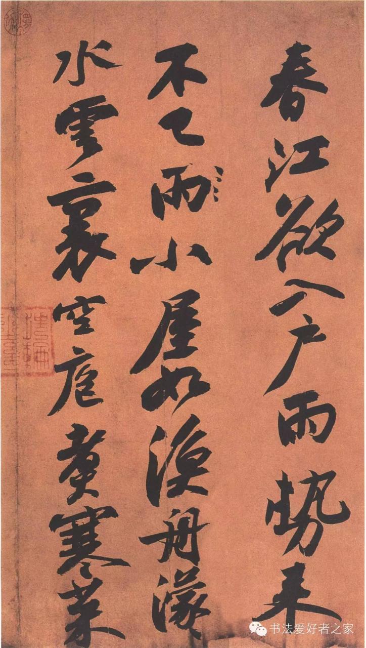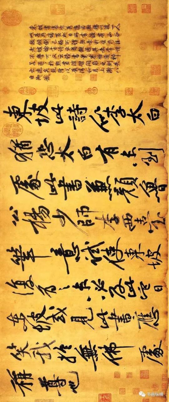 字子瞻,号东坡居士,眉山(今属于四川)人。他和他的父亲苏洵,弟弟苏 辙以诗文称著于世,世称“三苏”。他的书法从“二王”,颜真卿,柳公权,褚遂良,徐浩,李北海,杨凝式各家吸取营养,在继承传统的基础上努力革新。他讲自己书法时说:“作字之法,识浅见狭学不足,三者终不能尽妙,我则心目手俱得之矣。”他讲他的书法艺术创作过程时说:“我书意造本无法,点画信手烦推求。”他重在写“意”,寄情于“信手”所书之点画。他在对书法艺术深刻理解的基础上用传统技法去进行书法艺术创造,在书法艺术创造中去丰富和发 展传统技法,不是简单机械的去模古。