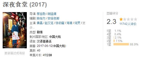 所以说,别怪大家不满意。得分低只是因为中国版《深夜食堂》拿了形式回来,却忘了——
