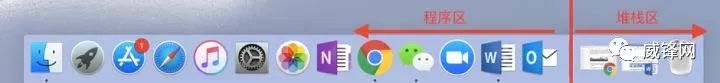 我们将 Dock 左边的区域称为程序区,也就是这边放的都是可以独立运行的程序;而右边叫做堆栈区,放的是所有需要依靠左边程序打开的文档mac切换桌面,文件夹等。例如现在被我打开的 Chrome 浏览器,Word 文档,都是放在右边,所以左右是不能互相移动的。