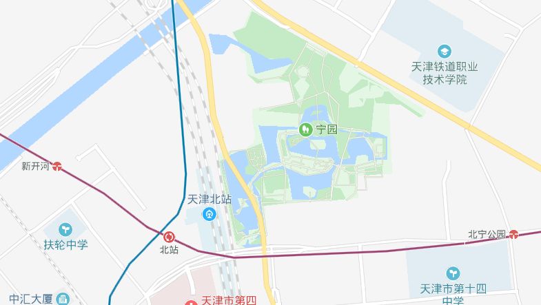 从地理位置来看,北宁公园位于河北区,天津北站东侧。有同名的地铁站,不过旁边的“北站”地铁站离公园更近一点。