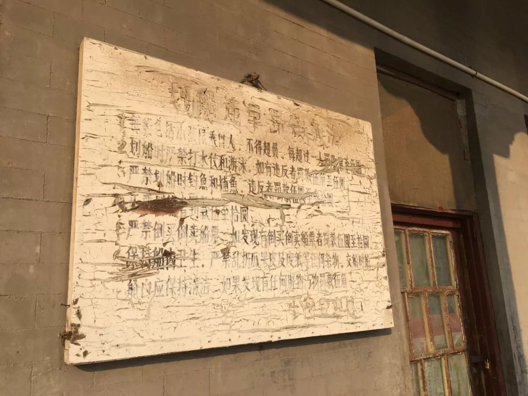湖边建筑墙面的标牌表明,之前这里存在着划船项目。曾经有人划船钓鱼,被禁止了。