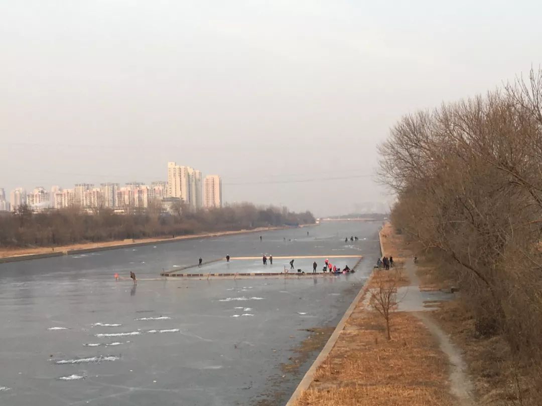 结冰的湖上还有几处芦苇,湖面上有管理人员在打扫落叶,然而我并不敢上冰面走。湖边有大爷大妈在遛弯or唱戏or唱高音,天津公园日常。