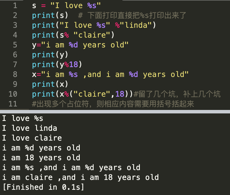 实际上,是有两种方法可以做到这一点。你可以按以下方式编写格式字符串,并在要显示在数字之前的每个字母前加一个反斜杠,如下: