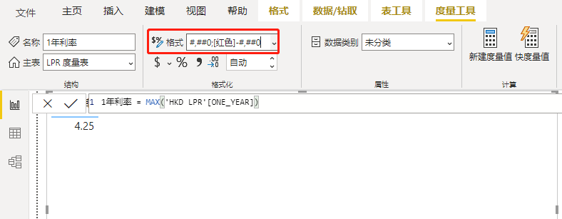 将Excel中的自定义格式粘贴到PowerBI的格式中,操作如下: