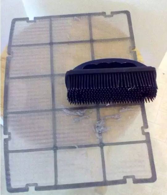 3、用毛刷蘸取温肥皂水,从滤网背面清洗,灰尘很快便消失了。
