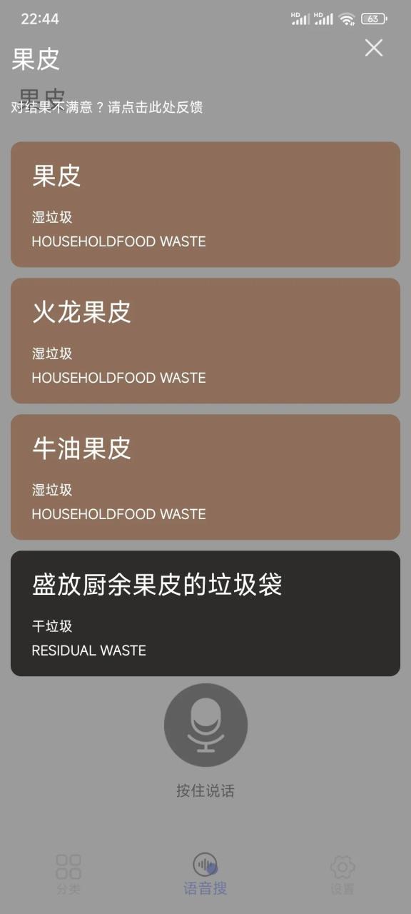 支持语音和文字查询,按住麦克风说话或者简单打几个字就可以智能匹配多个关联的垃圾名词,准确的查询你想查询的垃圾,简直不要太方便。