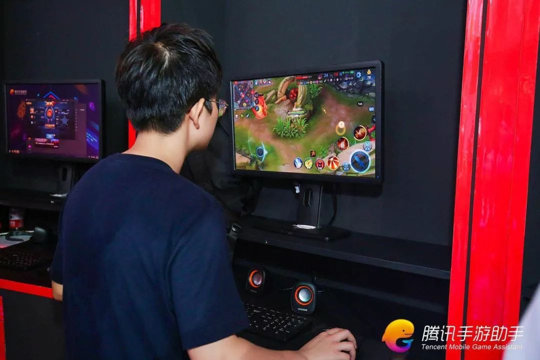 体验完急诊室之后,小编才开始逛游戏体验区,与其他展台的游戏体验区不同的是,这里的游戏体验区体验的是用腾讯手游助手在电脑上玩手游的爽快感!