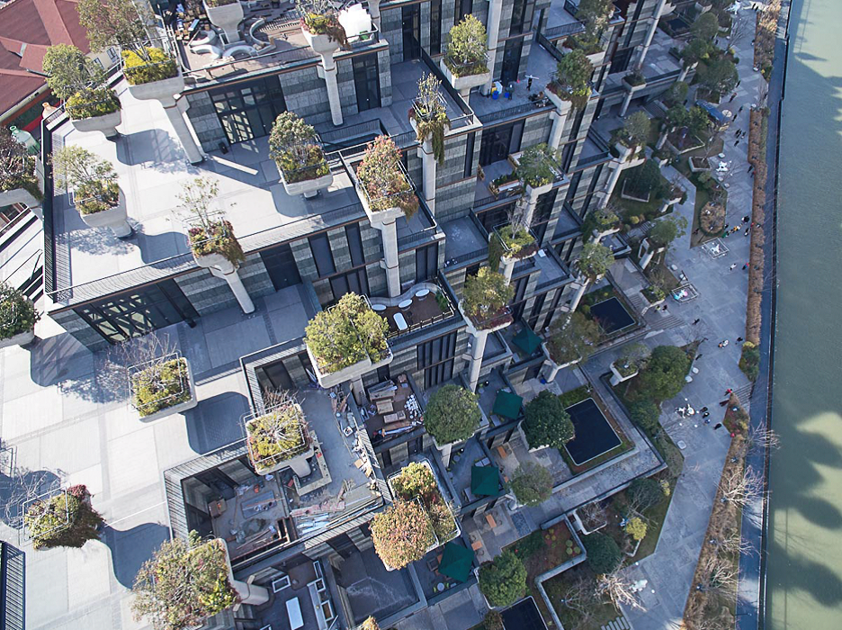 相较于大多数混合用途建筑采用的方正布局、玻璃立面以及钢和钢混结构,天安·千树打造出了一种独特的新型拓扑结构。
