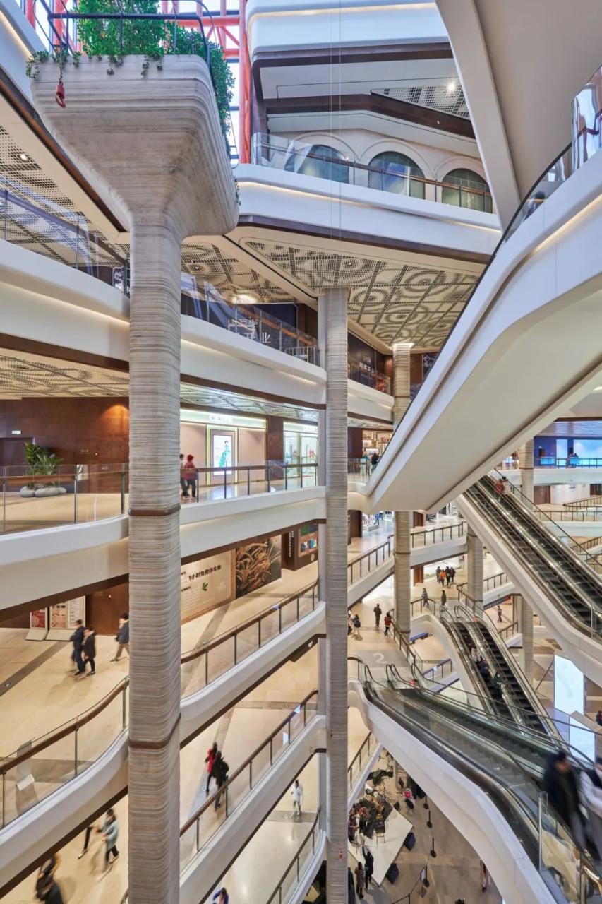 然而,该建筑形态的复杂性给结构设计和项目施工带来许多挑战。例如,商场室内布局包含一系列譬如动线、中庭、活动空间和大小店铺等不规则的元素,这意味着并非所有结构柱均可采用 9米柱网。