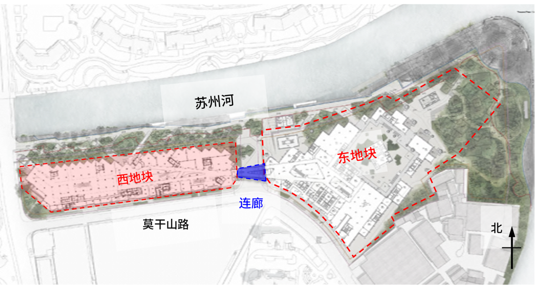 东区建筑立面采用相似的退台设计,室内挑空大空间可满足不同功能需求。其50米大跨玻璃屋顶将围合原址上的历史保护建筑,地下室的设计和施工也将避开历史建筑。同时,西区和东区两个地块将通过一座跨度为50米的双层钢结构人行桥连接。