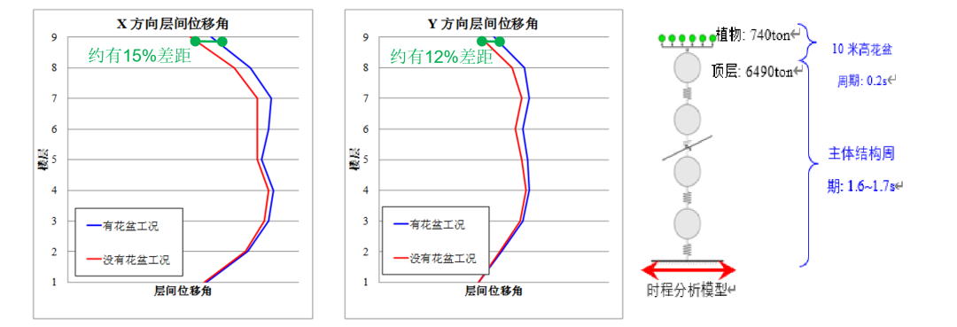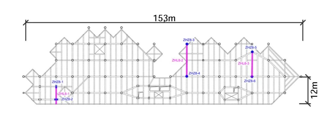 由于建筑退台的需求,结构框架在不同楼层的几处位置形成局部单跨框架,缺少结构冗余度,对结构抗震不利。为此,我们针对单跨桁架进行局部加强,采用非线性时程分析方法对不利单跨框架进行细致的地震响应分析模拟,使其强度和性能得到验证。