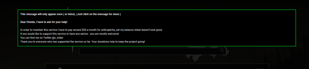 打开后有个弹窗,没有按钮,鼠标在弹窗上点一下就关闭了,意思呢,简单说就是网站很贵,急需帮助~