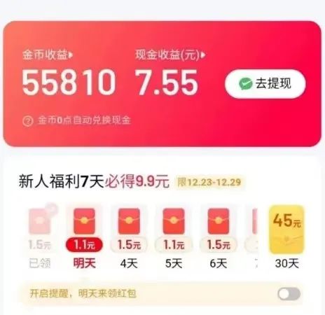 那我们如何放大收益呢? 一,检测账号 在刷视频的时候,会自动跳转下一个视频,当金币显示大于200时,证明账号没有问题。如果刷视频降低了,你就点击看小说,这样来回切换就OK。每天操作时间控制在三个小时。 二,会员开通 等到我们账号余额有3米时间,建议就去开个会员,这样金币就可以翻倍,从而加快金币的累积,会员大家看情况而定,因为是白嫖项目,所以可以慢慢操作,慢慢薅羊毛。 三,提现操作 平台的兑换率是1W金币兑换一米,提现直接绑定ZFB,一个ZFB账号可以绑定多个账号,这样方便我们矩阵操作,多号变现。 项目分析 今天的项目单号操作确实收益不高,但是优势就在于可以自动化操作,这样就可以放大操作空间,把自己身边的号码多注册几个来操作,抽个时间统一进行操作,让他们自动跑起来,三个小时在一起收金币,设备多的友友可以实际玩一玩,项目薅薅羊毛还是非常不错的。还是那句话,执行力才是王道,有兴趣的友友快点行动起来吧! 完 |