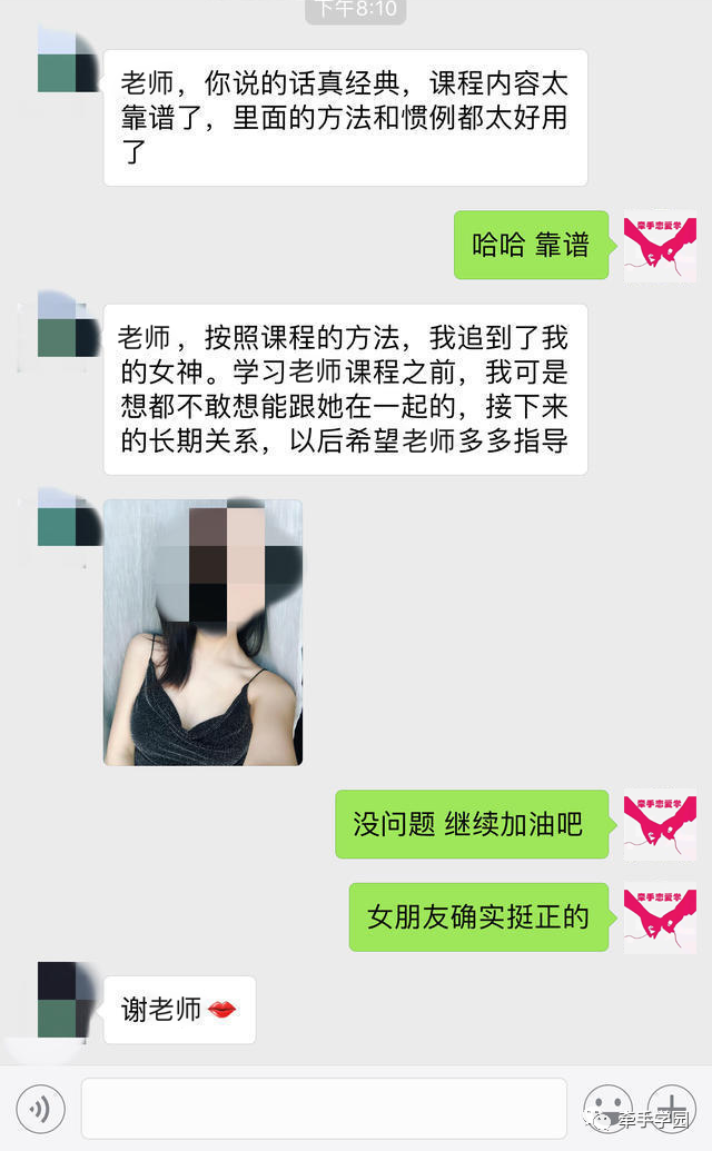 如果你现在不会聊天?不会约会?不会谈恋爱?但是,只要你想要学习,想要和我上万名学员那样轻松脱单,想追到自己喜欢的女生,那就直接长按下方图片添加老师微信给老师发三个字——我要学!