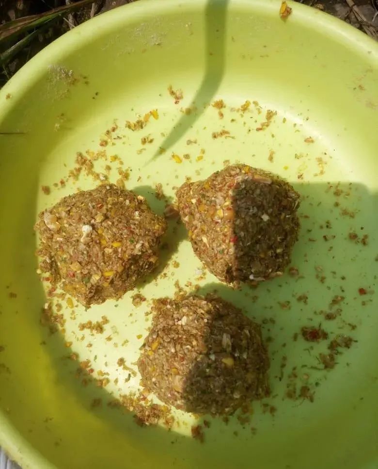 用颗粒饲料诱鱼时,钓饵需要这样配制:1/3化开的颗粒饲料+1/3鲤鱼专用商品饵+1/3香甜鲫鱼麦蛋白饵。