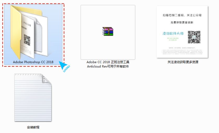 步骤一:将我们下载好的软件安装包解压,选择【解压到Adobe Photoshop CC 2018官方原版+最新注册文件】解压之后打开文件夹。