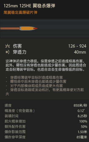 第三种为“尾翼稳定高爆破片弹”这种炮弹用法比较特殊,首先40mm的穿透力除了某些裸奔坦克以外几乎是难以击穿任何目标的,所以在使用这种炮弹时主要是它有在没有击穿目标时也能造成少量伤害的特点,适合收一些血量较少的人头,特定局势下有一定作用,所以带5-7发足以,没必要带太多。