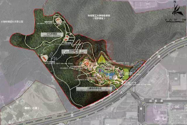 ✔位于盐龙大道与爱心路交会处北侧(毗邻华南理工特色学院),定位为区级专类公园(儿童公园)
