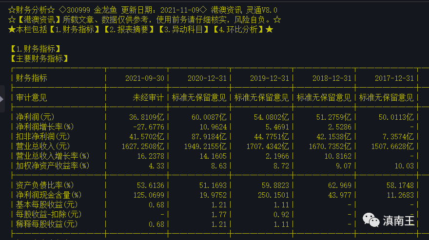 大家看最近五年的财务数据,其实金龙鱼最大的问题就是业绩滞涨,上市一年业绩就变脸,还是值得警惕的!