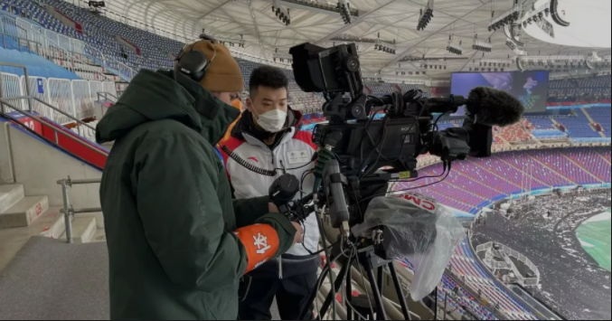 由于现场AR虚拟工作间的位置与国家体育场内现场三个虚拟机位的位置相隔甚远,最长大概有800多米,最短的也有600多米,超长的距离加大了虚拟系统部署的难度。同时按照冬奥防疫要求,现场分为闭环内与闭环外的复杂环境,由于虚拟摇臂机位的位置特殊,没有通道可以从闭环内直接到达,所以对虚拟系统的安装和调试都十分具有挑战。