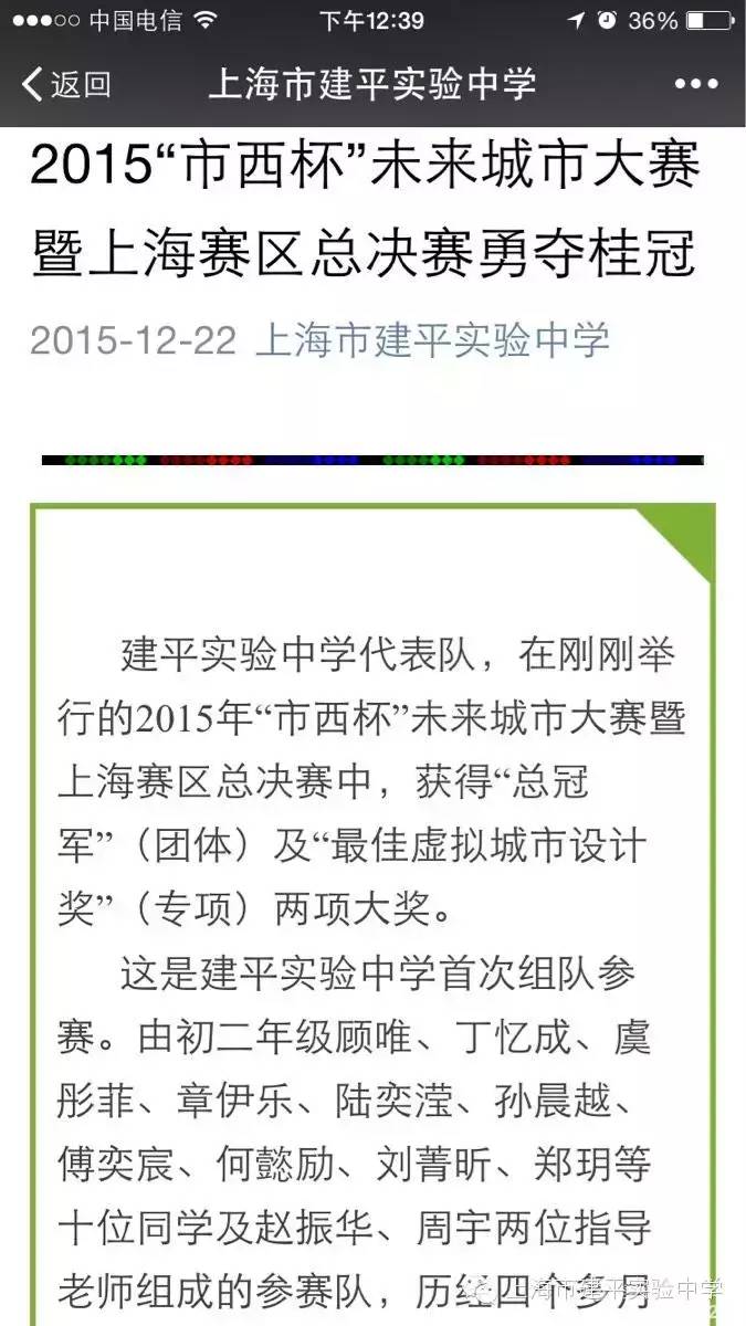 理由四 学生牛建平实验是一所公办学校,一直以来都是朝着办成老百姓心目中理想的学校而努力!在老师和学生的共同努力下,建平实验仿佛有化腐朽为神奇的功力,学生在各项比赛中成绩显著!这里只列这一年的几个全市全国第一(冠军、金奖)的个人和团体!其余二三等奖啥的或区级的奖项就不列了,因为根本列不完