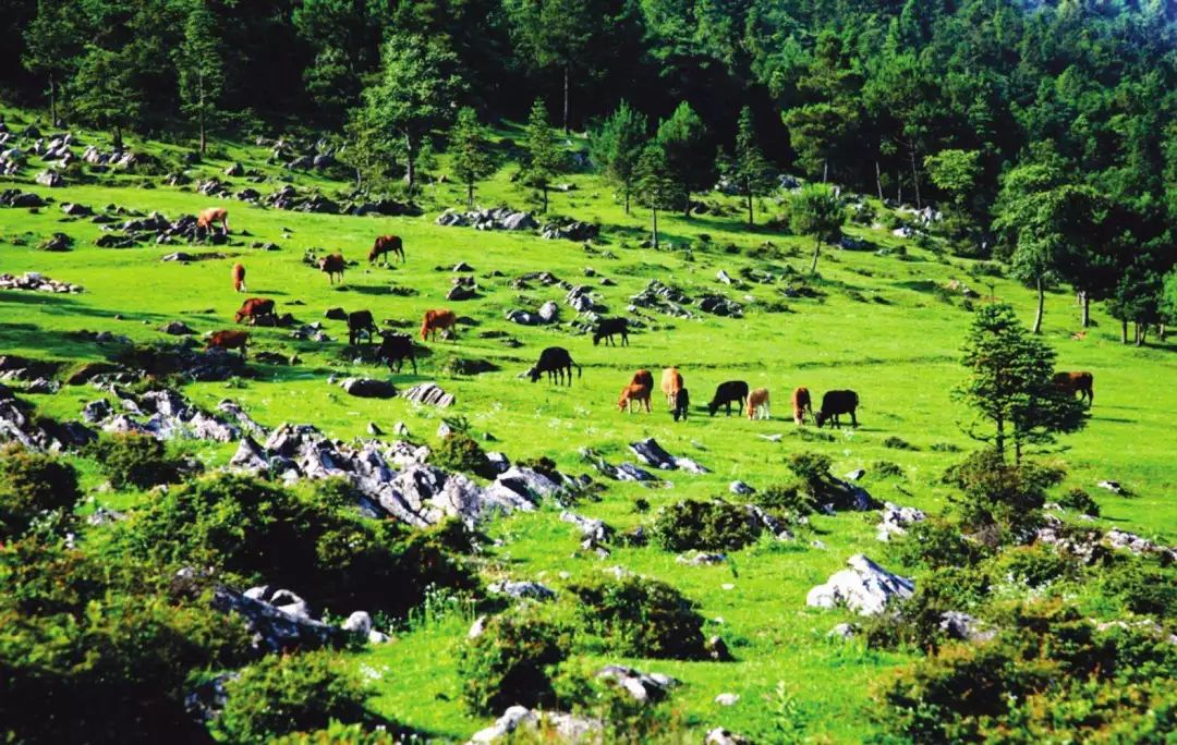千野草场,黄水国家森林公园的重点景区之一,集山、林、草、石、畜于一体,颇有“天苍苍,野茫茫,风吹草低见牛羊”的南国草场风光。