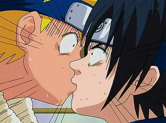 在剧情初期的时候,鸣人跟佐助,互相看不顺眼,相爱相杀。有次在教室两人互相对视,没想到后面的同学不小心推了一把,然后就亲上了,当时也把我笑喷了!
