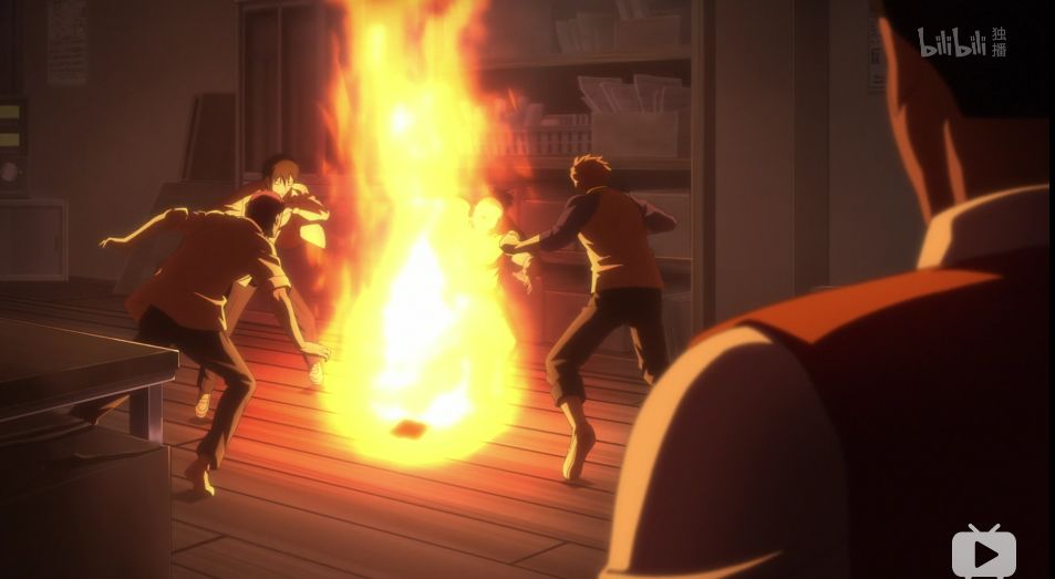 《在下坂本,有何贵干?》是个男主花式秀操作的番,有一次几个不良想把装逼的男主锁在化学室里想教训他一顿,结果不小心着火了,门也被反锁住了出不去,后来坂本大佬使用了装逼技能“反复横跳”,借着左右来回的激烈运动,能让风吹起来。