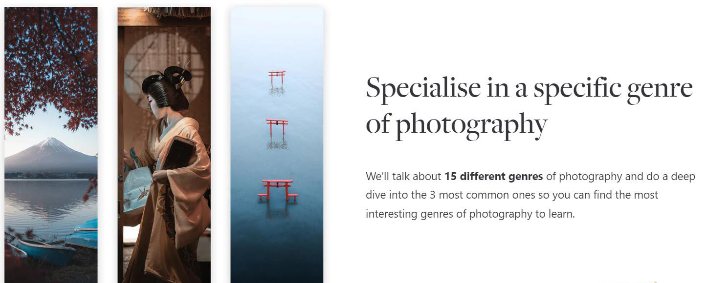 有了关于摄影工艺的重要知识,我们将进入我所说的摄影“艺术”,我们将讨论构图、视觉语言和视觉层次,我们将讨论发展一种风格和发现你的艺术目的,并真正了解我们为什么要做我们所做的事情的内在价值观。