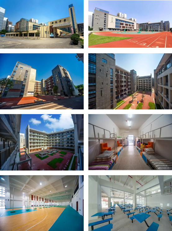 学校实行全寄宿制+走读制管理,宿舍通风、宽敞、明亮,配备空调、热水器等,每间宿舍住8-10人,每层楼均有自习室供学生看书、自习。