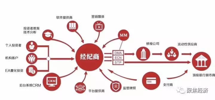 除了这些以外,产业链往下游市场拓宽则更加的广泛和具有地域性。比如说,在国内市场,由于市场开发的需求,与很多市场相比,国内的市场存在着大量的IB群体,客户可以通过IB在经纪商处进行开户,IB可以从经纪商处获得部分的返佣,同时IB也会为客户提供一系列的教育和咨询的服务。