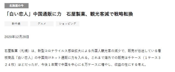 由于是多年来的人气代购商品,白色恋人通过各种各样的渠道辗转反复来到国内,但是其实统统不正规!甚至在2017年,白色恋人的母公司“石屋制菓”还曾经披露国内某公司并非正规代理的通告,表示自己只在北海道区域限定。