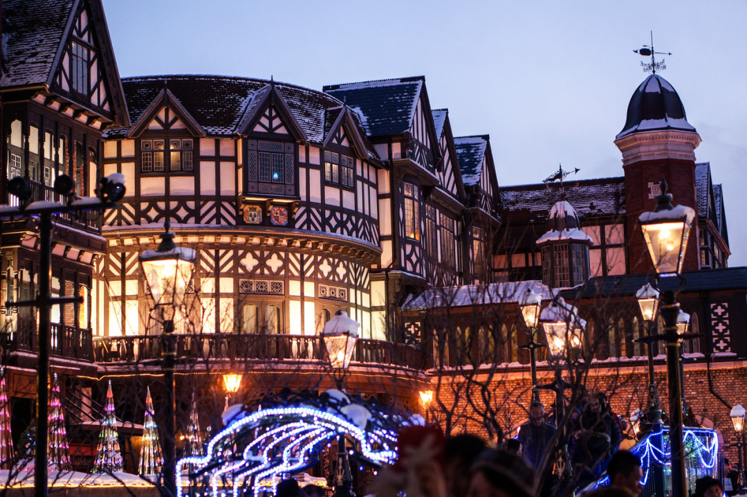 而在冬天前来,每一个窗户都会放上精心装扮的雪人,让整个公园变成一个童话世界。