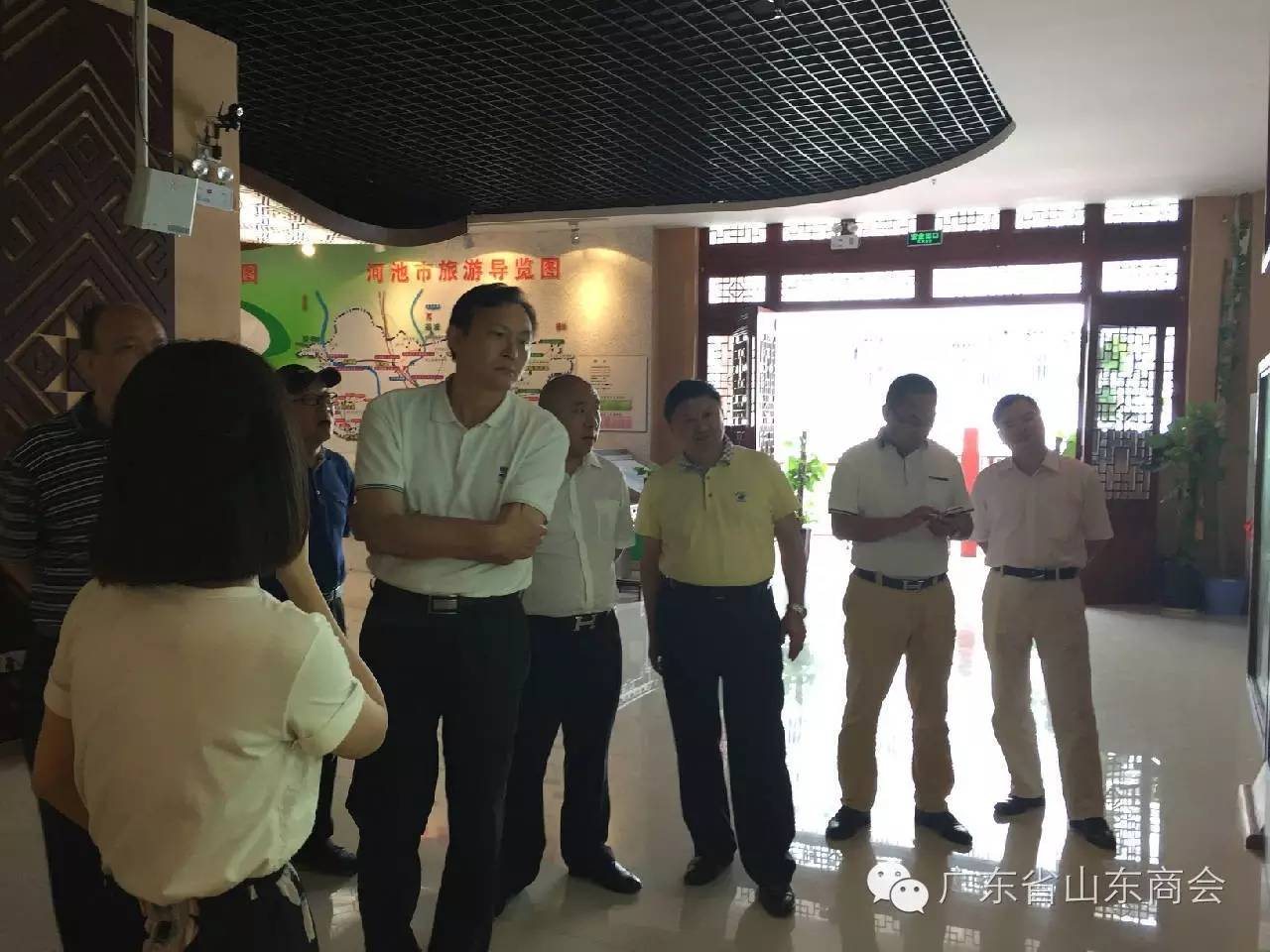 2016年6月22日,应广西自治区河池市人民政府的邀请,全国政协委员、广东省山东商会会长、广东圣丰集团董事长江南;广东省山东商会秘书长周慎坤;广东省山东商会副会长:广东江河星月文化传播有限公司董事长刘勇宏、广州万昌音响有限公司董事长刘华长、广东科海信息科技股份有限公司董事长杨民军、汕头市恒信联工程设备有限公司董事长孙健,一行六人组成的代表团赴广西河池参观考察。