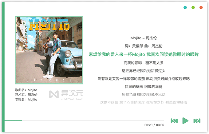 搜索到歌曲之后,直接点击「播放」按钮即可试听,也可以添加到列表进行播放,同时也能查看歌曲的专辑、封面、歌词等。